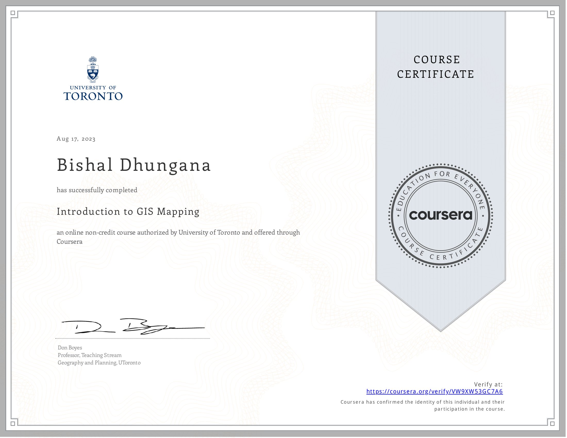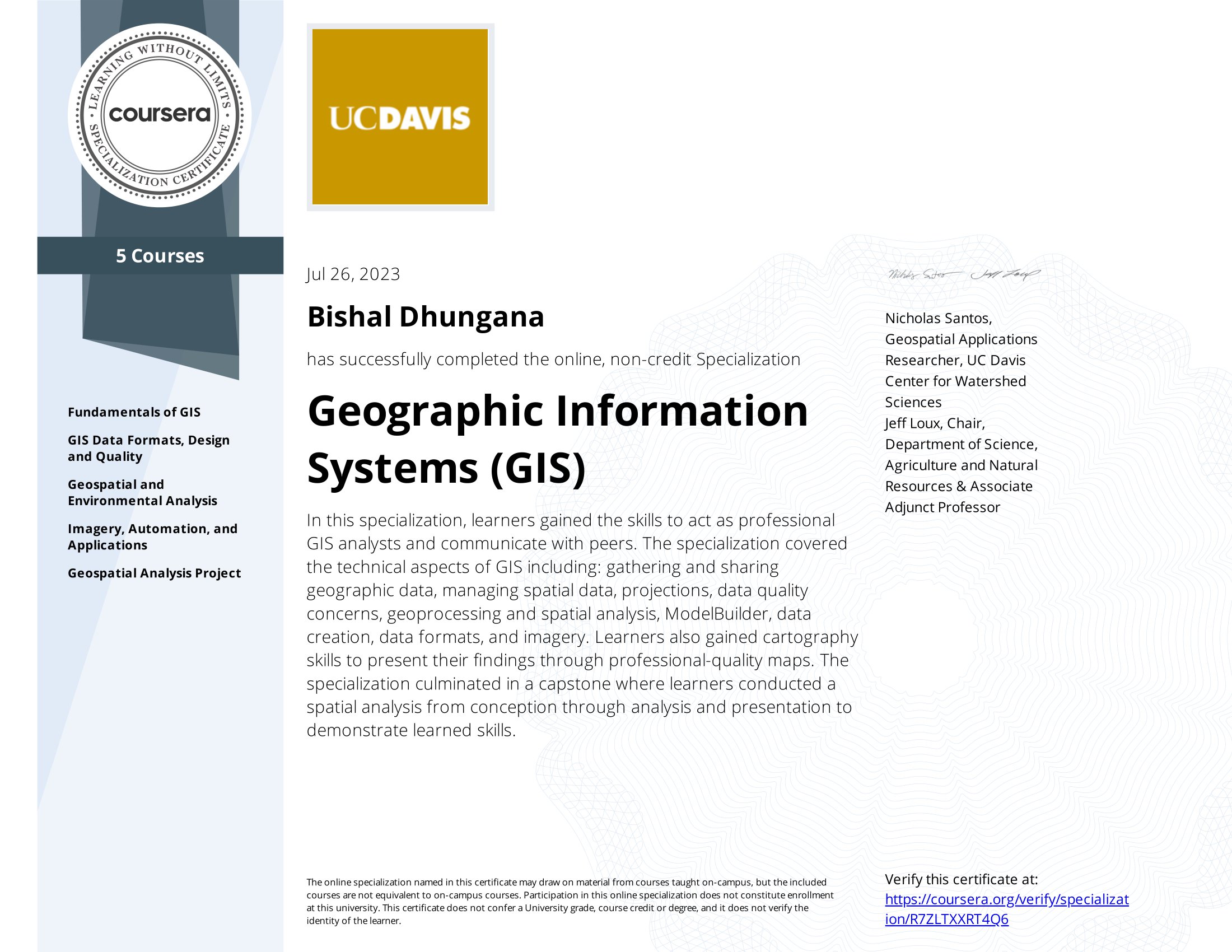 Major Courses: GIS, Geospatial Databases, Spatial Data Analysis, Programming in GIS with Python, WebGIS, Graduate Research