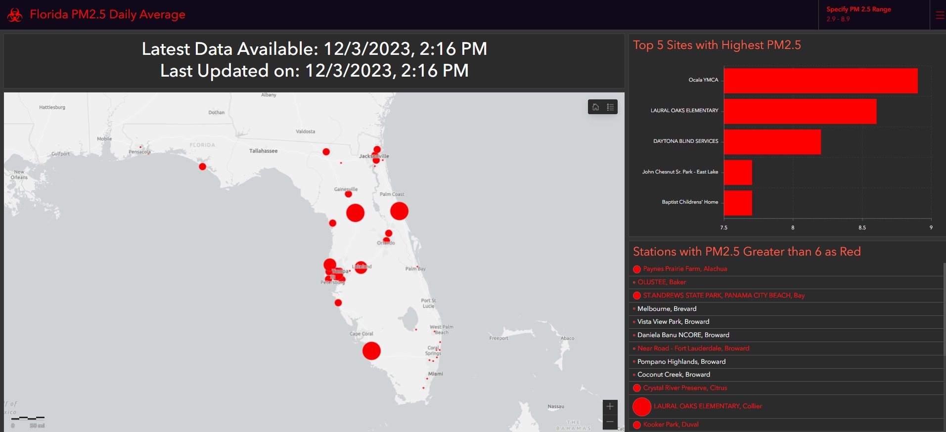 - Air Pollution in Florida: Dashboard for Visualization of Mean Daily Average Fine Particular Matter (PM2.5) with Automatic Update Tool
